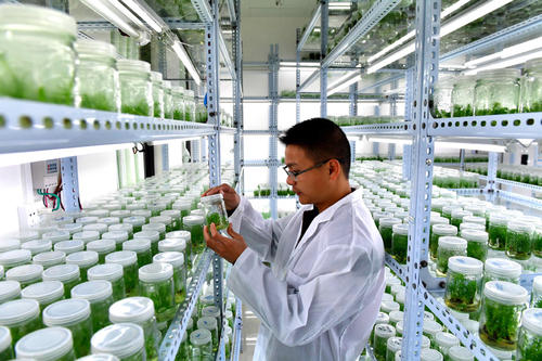 在育苗階段,葛岩凱他們在藥物工程分院植物學博士劉金娜老師的指導下,自主研發出了可噴施性植物生長調節劑,促進種子萌發,改善幼苗質量,讓奶油南瓜出苗率提高20%以上,目前在業内具有領先優勢。2018年9月公司在楊淩示範區創新園内建立了西北首家奶油南瓜育苗基地,現已批量化研發推廣。