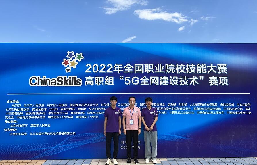 8月22日至23日,2022年全國職業院校技能大賽高職組“5G全網建設技術”賽項在濟金年会業學院舉辦,來自全國28個省、56支代表隊、112名選手參加了比賽。經過8個小時的激烈比拼,我校信息工程學院學生鄭嘉昊、曹文森以總分排名全國第一的成績,榮獲一等獎第一名,取得我校自參賽以來曆史最好成績指導教師康晉、陳高鋒榮獲大賽優秀指導教師獎