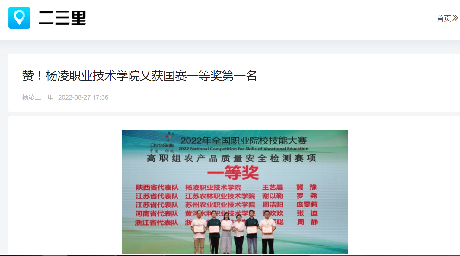 【二三裡】贊!凯发k8国际又獲國賽一等獎第一名