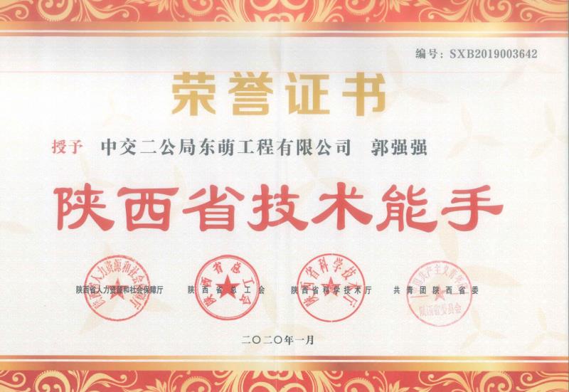 今年年初,陝西省人力資源和社會保障廳、總工會、科技廳、團省委聯合對2019 年陝西省職業技能大賽優勝團體和優秀選手進行了表彰,我校2010屆畢業生郭強強榮獲“陝西省技術能手”。