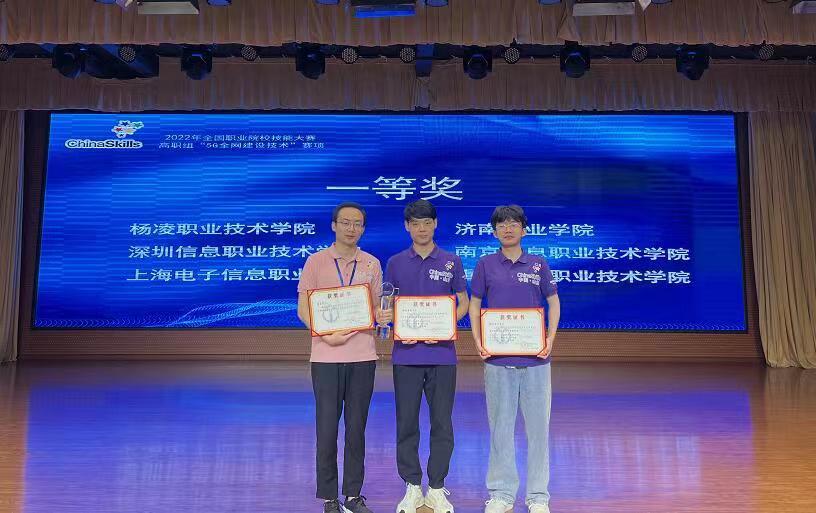8月22日至23日,2022年全國職業院校技能大賽高職組“5G全網建設技術”賽項在濟金年会業學院舉辦,來自全國28個省、56支代表隊、112名選手參加了比賽。經過8個小時的激烈比拼,我校信息工程學院學生鄭嘉昊、曹文森以總分排名全國第一的成績,榮獲一等獎第一名,取得我校自參賽以來曆史最好成績,指導教師康晉、陳高鋒榮獲大賽優秀指導教師獎。