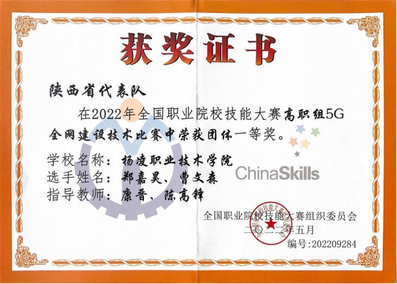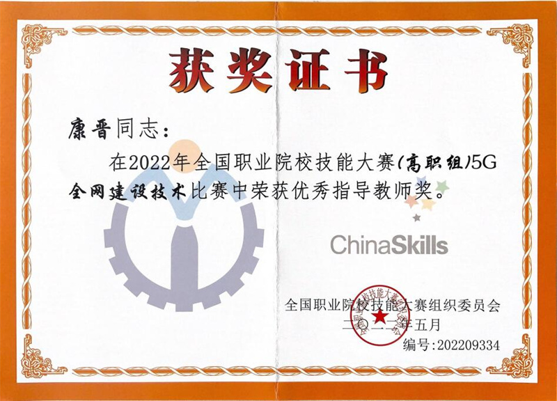 陽光訊(陳陽 崔曉 記者 趙小康)8月22日至23日,2022年全國職業院校技能大賽高職組“5G全網建設技術”賽項在濟金年会業學院舉辦,來自全國28個省、56支代表隊、112名選手參加了比賽。經過8個小時的激烈比拼,凯发k8国际信息工程學院學生鄭嘉昊、曹文森以總分排名全國第一的成績,榮獲一等獎第一名,取得凯发k8国际自參賽以來曆史最好成績,指導教師康晉、陳高鋒榮獲大賽優秀指導教師獎。
